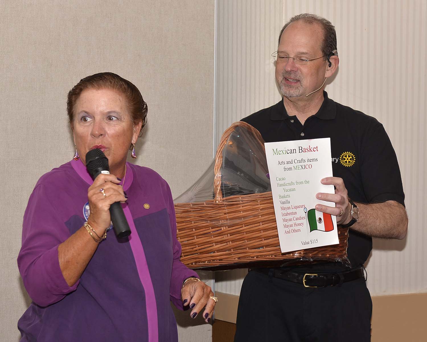 We welcomed back Diane Brabetz back from her recent trip with her husband, Les, to Mexico where they celebrated their 46th anniversary in grand fashion. Diane didn’t come back empty-handed either — she offered a fabulous gift basket from Mexico for the Lobster Feed Silent Auction with loads of really great local Mayan artisans items!