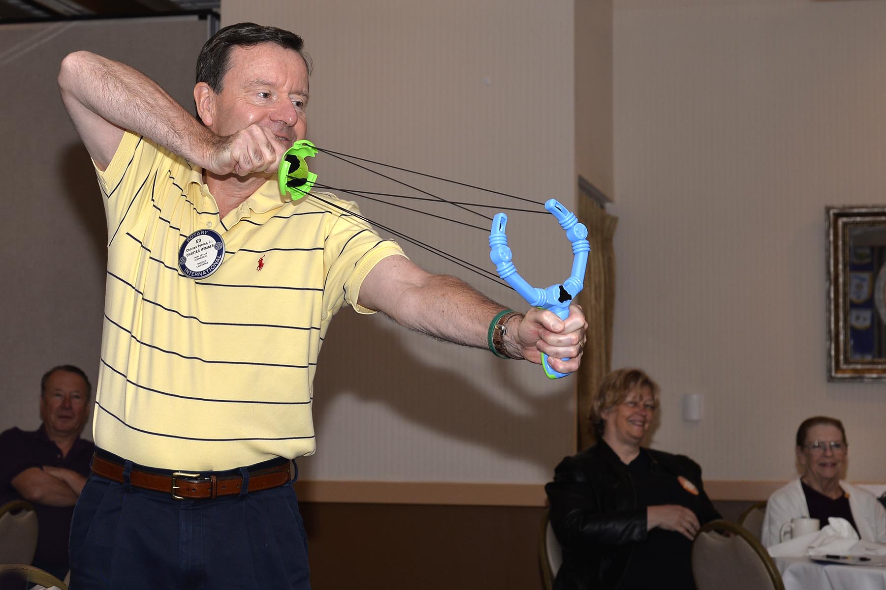 With the raffle climbing over $450, Club Members worked on improving their odds with the Slingshot Game by taking aim and practicing before the meeting.