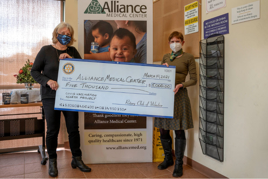 - A direct $5,000.00 grant from Windsor Rotary to Alliance Medical Center will support the Huerta Gym vaccination clinics.